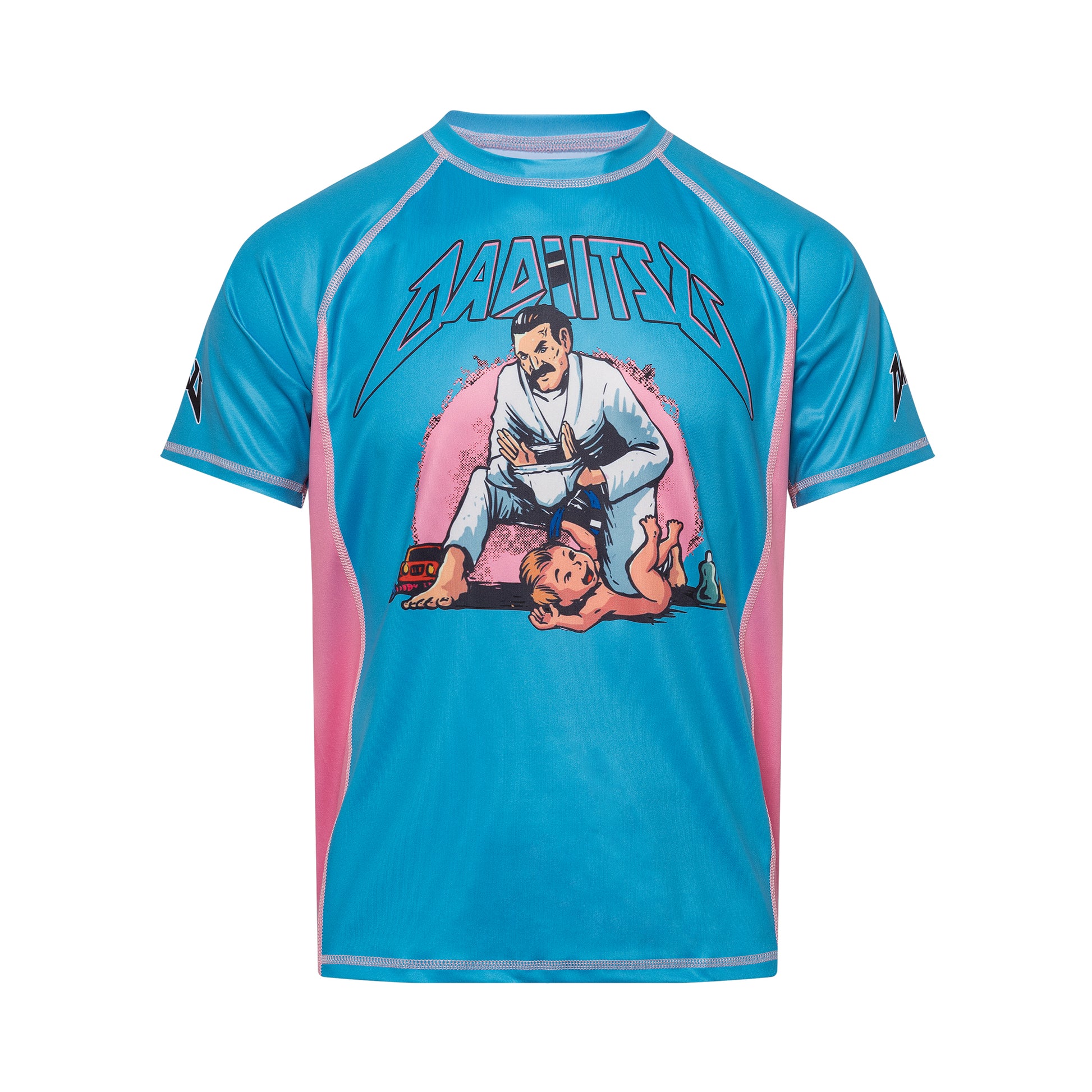 Master the art of brazilian jiu-jitsu and fatherhood with the "Knee On Baby" Edition rashguard. Crafted from a premium 320GSM Spandex-Polyester blend, this rash guard offers heavyweight durability for life’s most grueling submissions—like wrestling a wiggly baby into a fresh diaper.